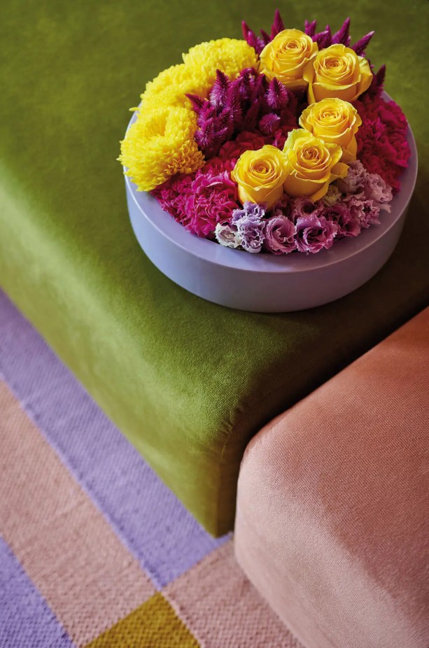 Flowers and plants are used in this trend to give spaces warmth and character. Powerful colours and rich textures enhance the feeling of homeliness. The use of colourful flowers and large houseplants contribute to a decorative and furnished interior.